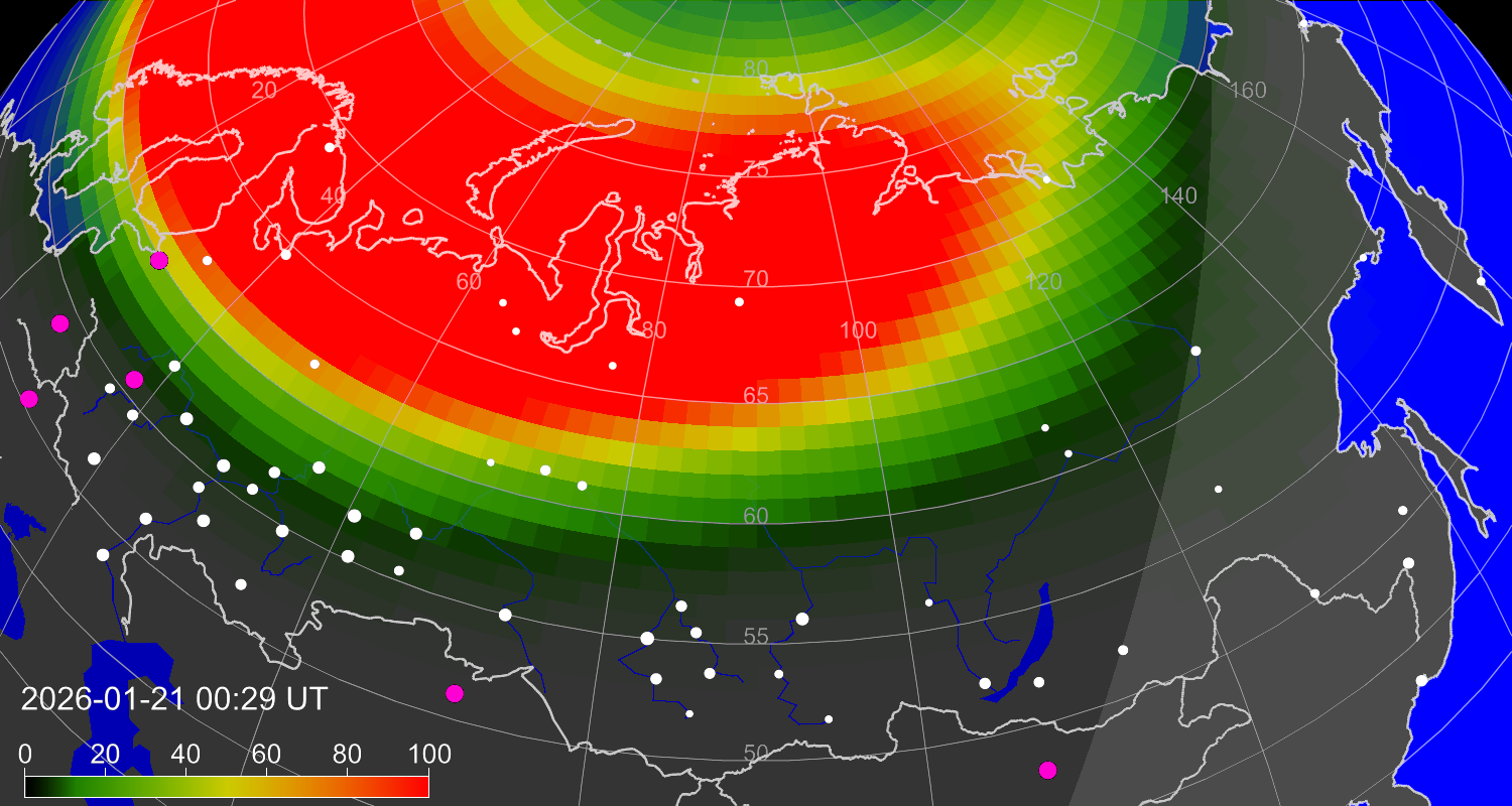 Вероятность полярных сияний в Мируте