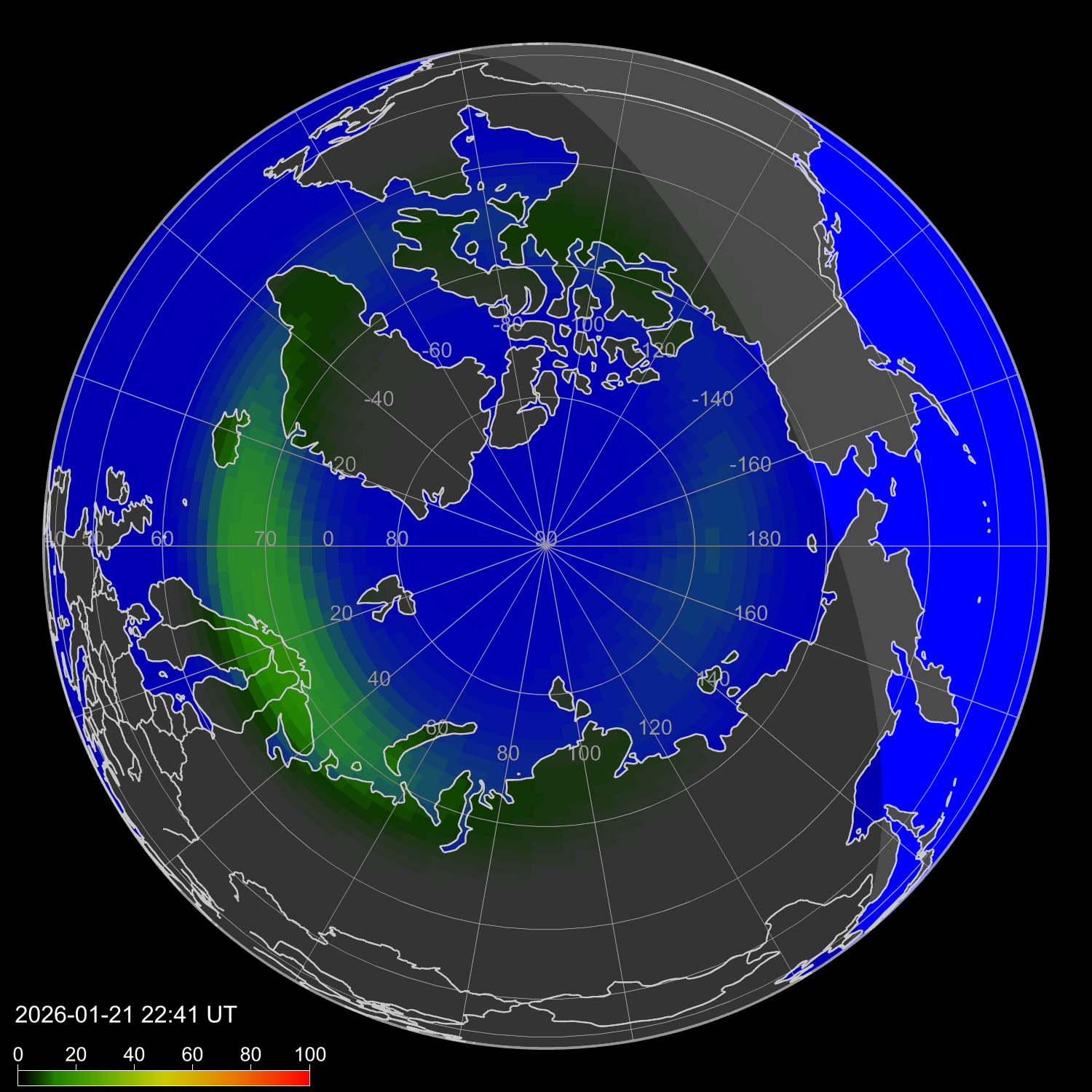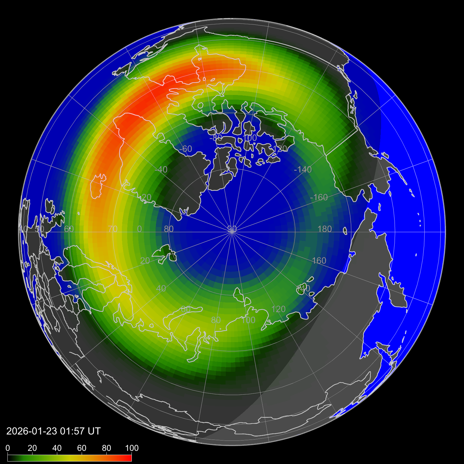 Зона полярных сияний в северном полушарии
