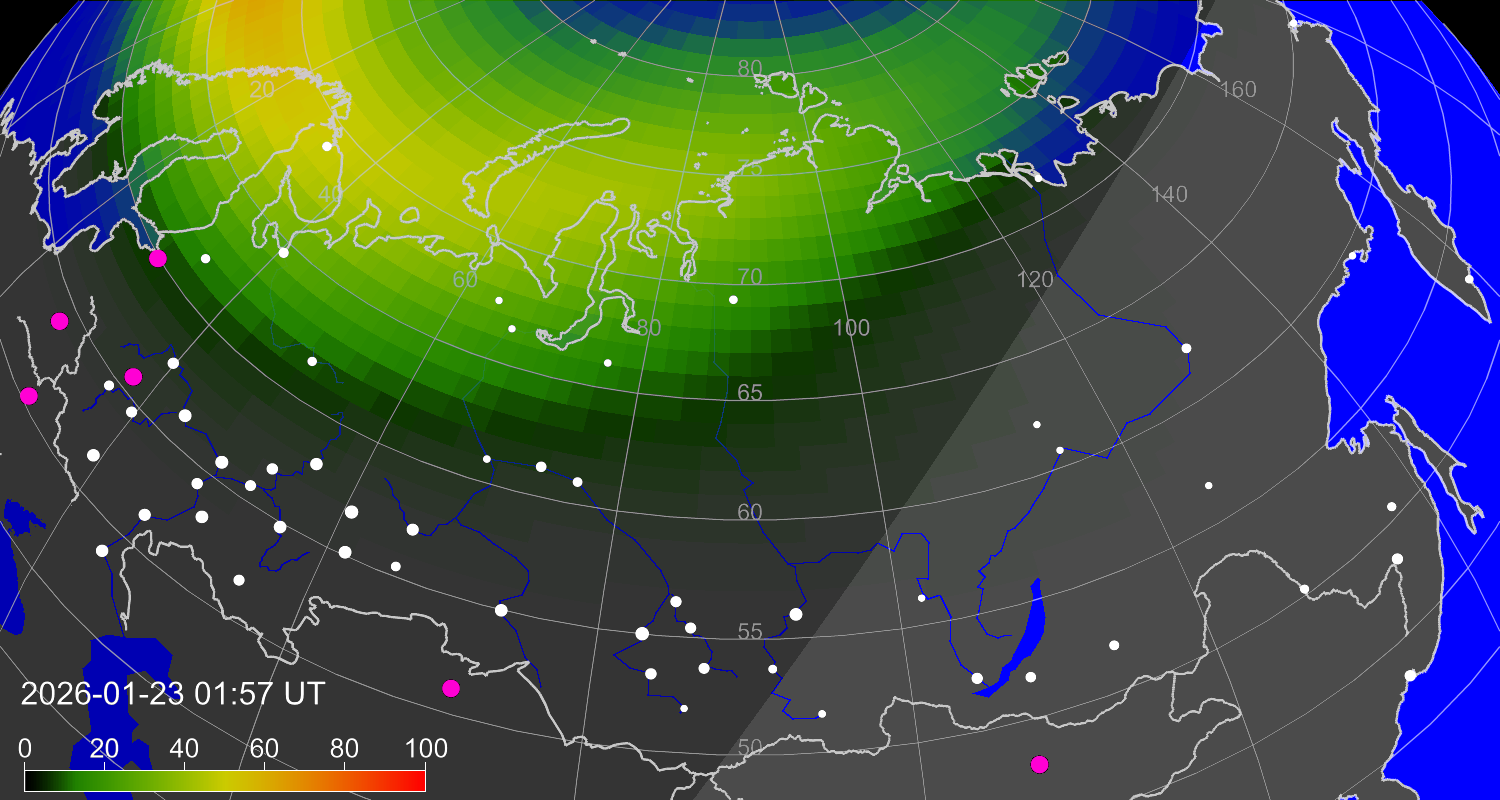 Вероятность полярных сияний в городах Российской Федерации