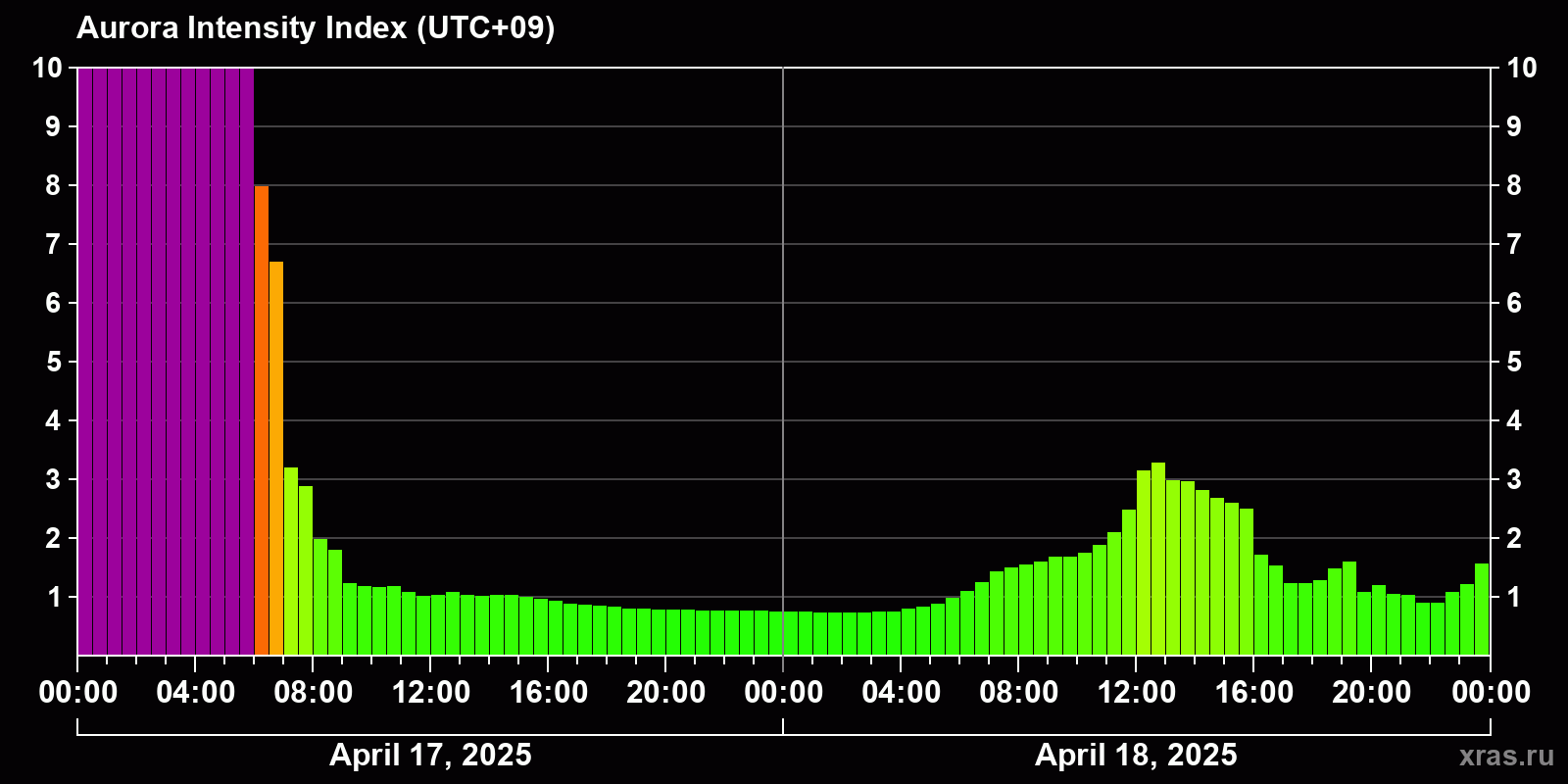 Changes in the auroral intensity index from 2025-04-17 to 2025-04-18 local time