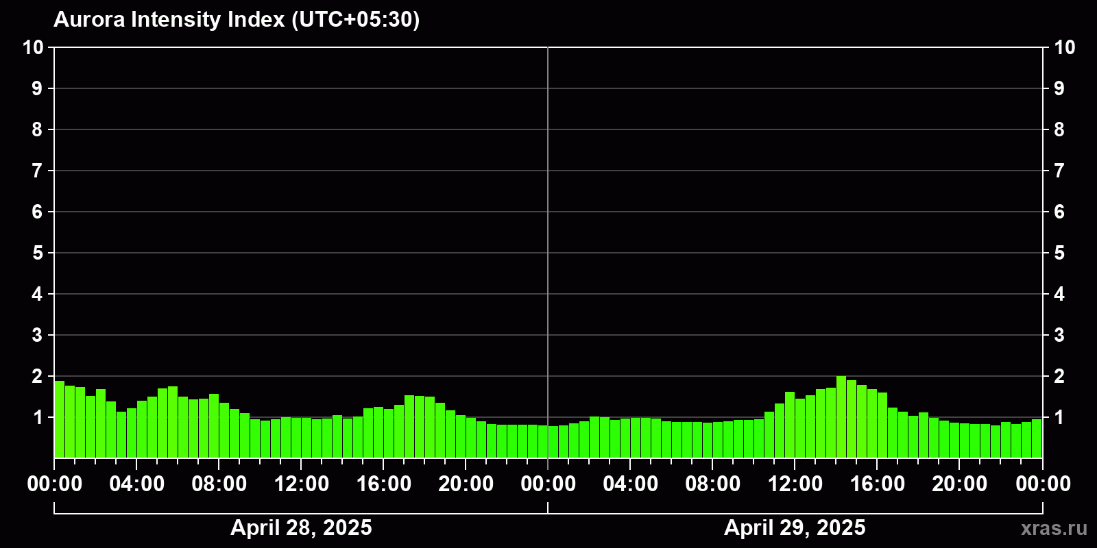 Changes in the auroral intensity index from 2025-04-28 to 2025-04-29 local time