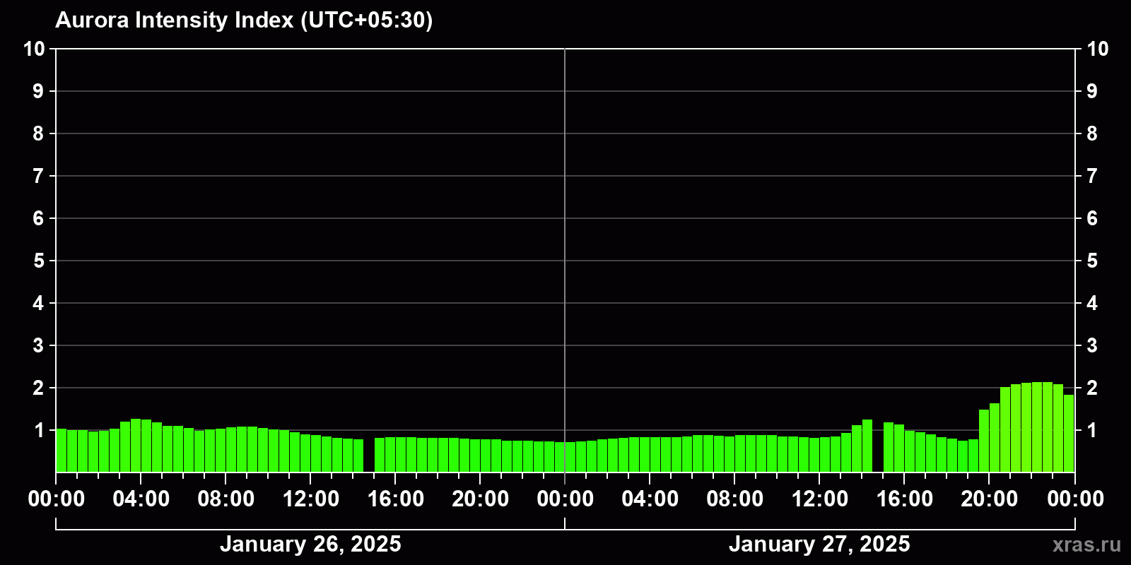 Changes in the auroral intensity index from 2025-01-26 to 2025-01-27 local time