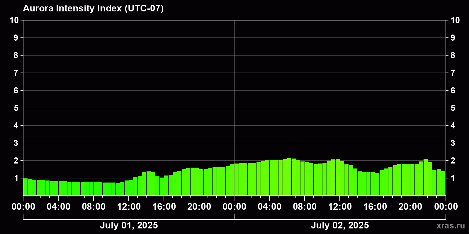 Changes in the auroral intensity index from 2025-07-01 to 2025-07-02 local time