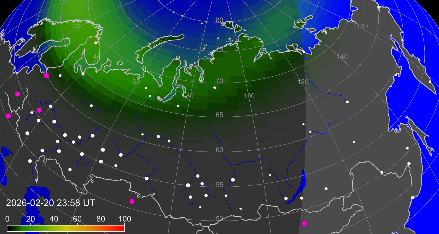 Зона полярных (северных) сияний над территорией Евразии