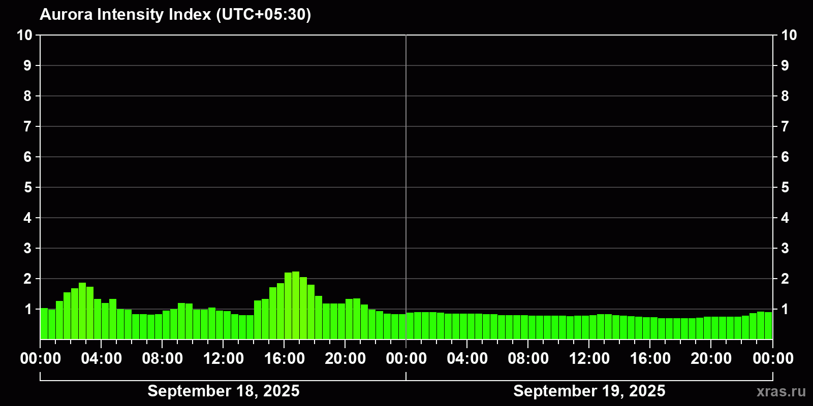 Changes in the auroral intensity index from 2025-09-18 to 2025-09-19 local time