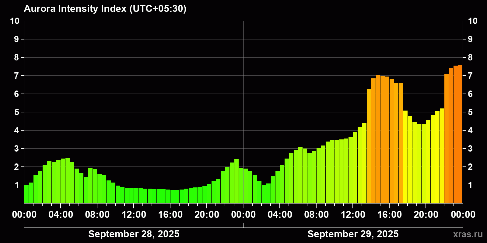 Probability of northern lights in Nasik