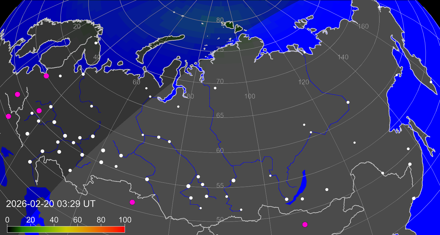 Вероятность полярных сияний в городах Российской Федерации