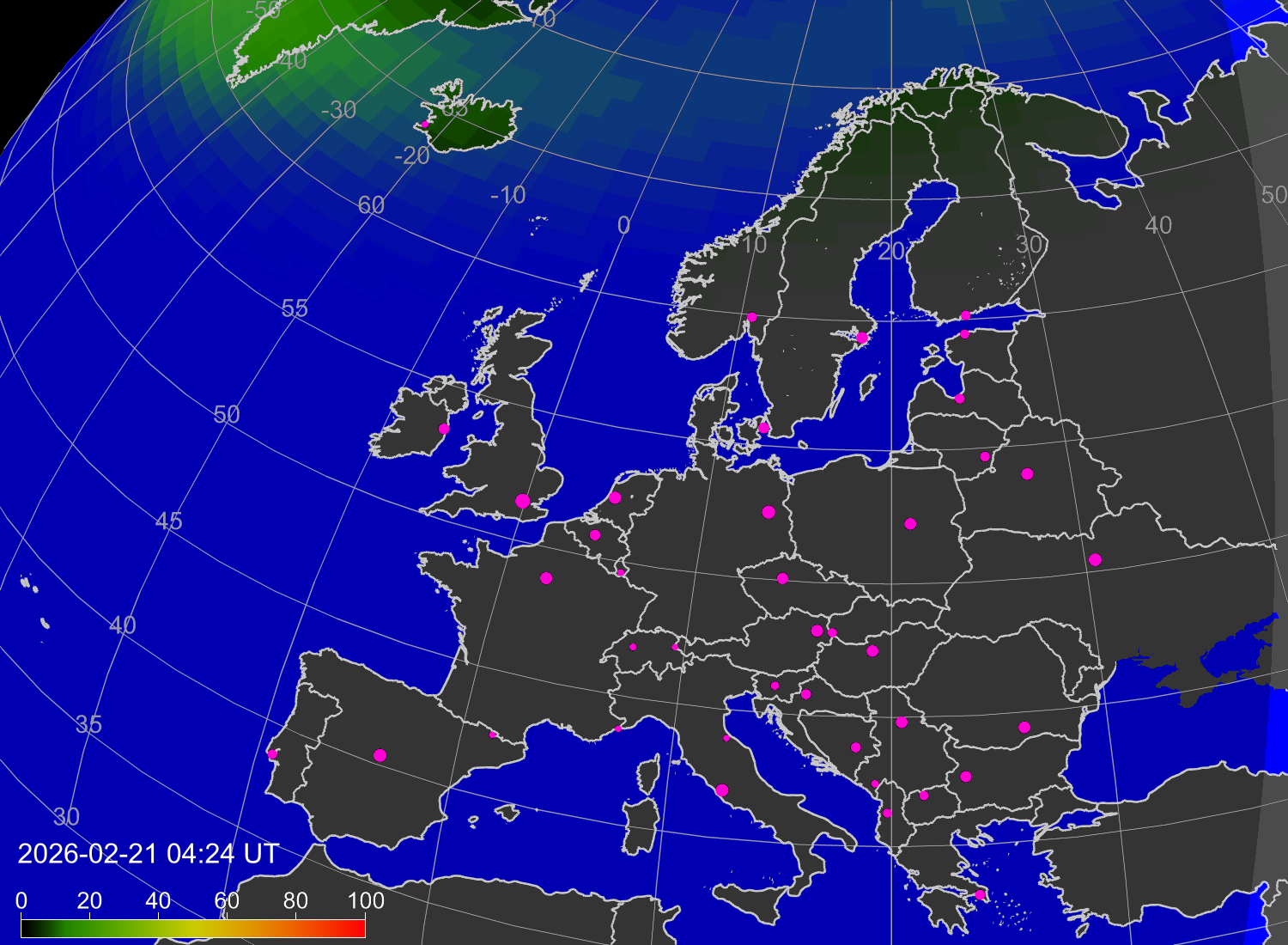 Вероятность полярных сияний в городах Европы