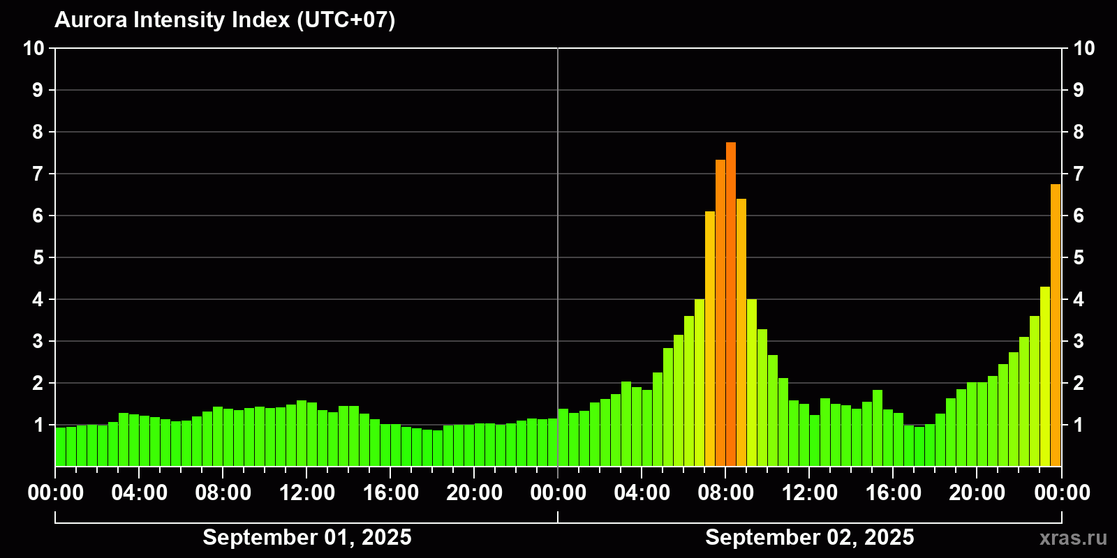 Auroras (northern lights) in Norilsk — Sep 02, 2025