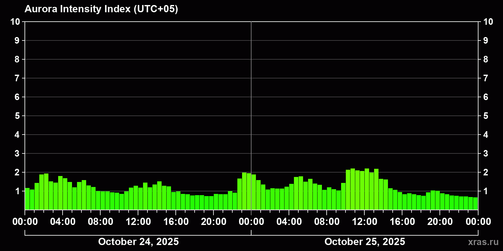 Auroras (northern lights) in Novy Urengoy — Oct 25, 2025
