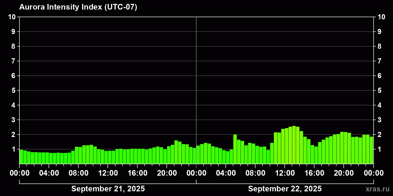 Changes in the auroral intensity index from 2025-09-21 to 2025-09-22 local time