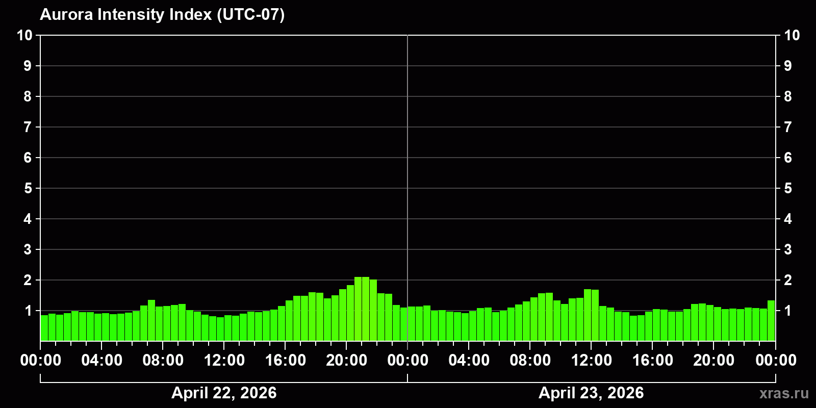 Changes in the auroral intensity index from 2026-04-22 to 2026-04-23 local time