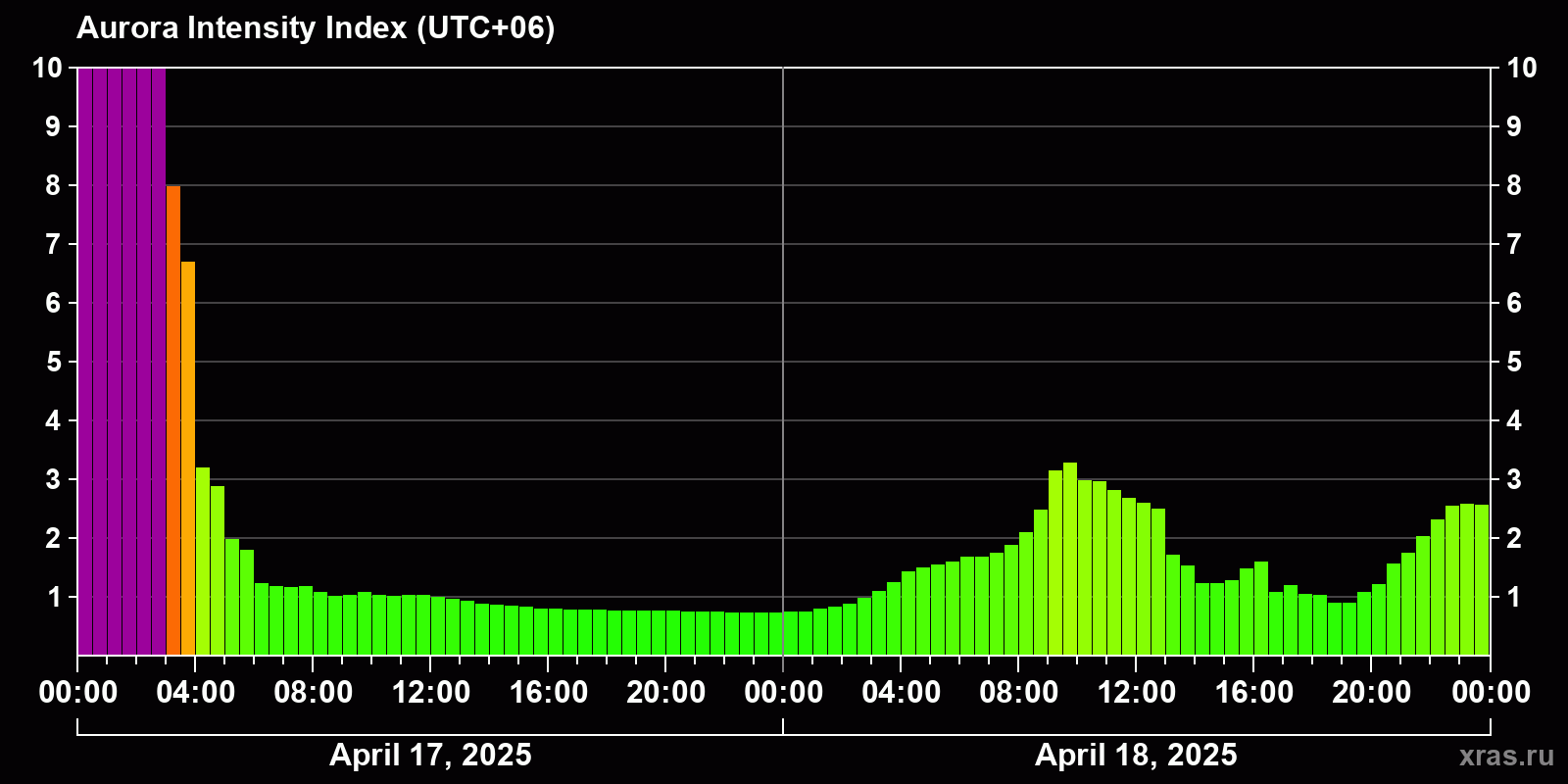 Changes in the auroral intensity index from 2025-04-17 to 2025-04-18 local time