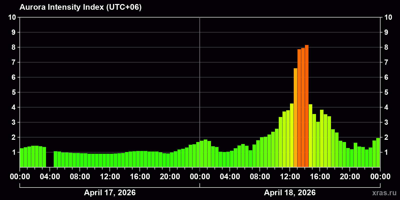 Changes in the auroral intensity index from 2026-04-17 to 2026-04-18 local time