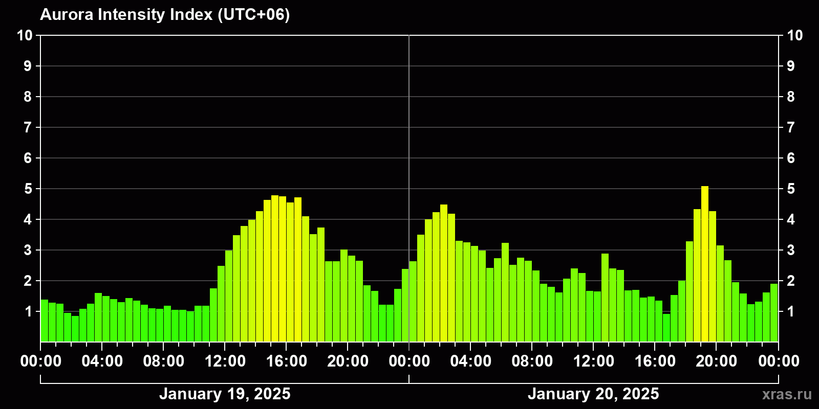 Changes in the auroral intensity index from 2025-01-19 to 2025-01-20 local time