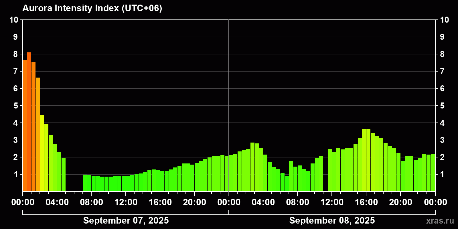 Auroras (northern lights) in Omsk — Sep 08, 2025