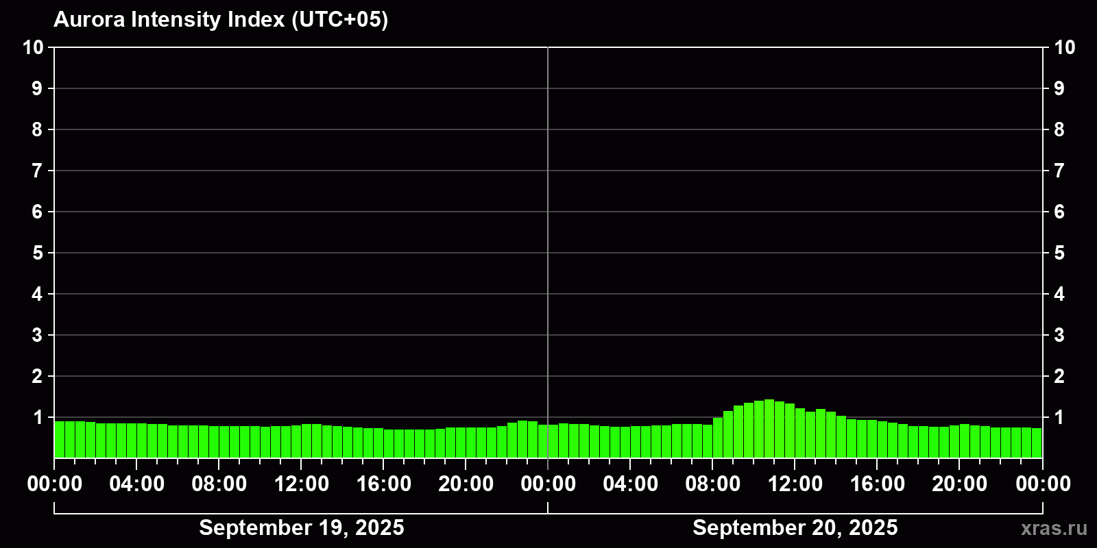 Changes in the auroral intensity index from 2025-09-19 to 2025-09-20 local time