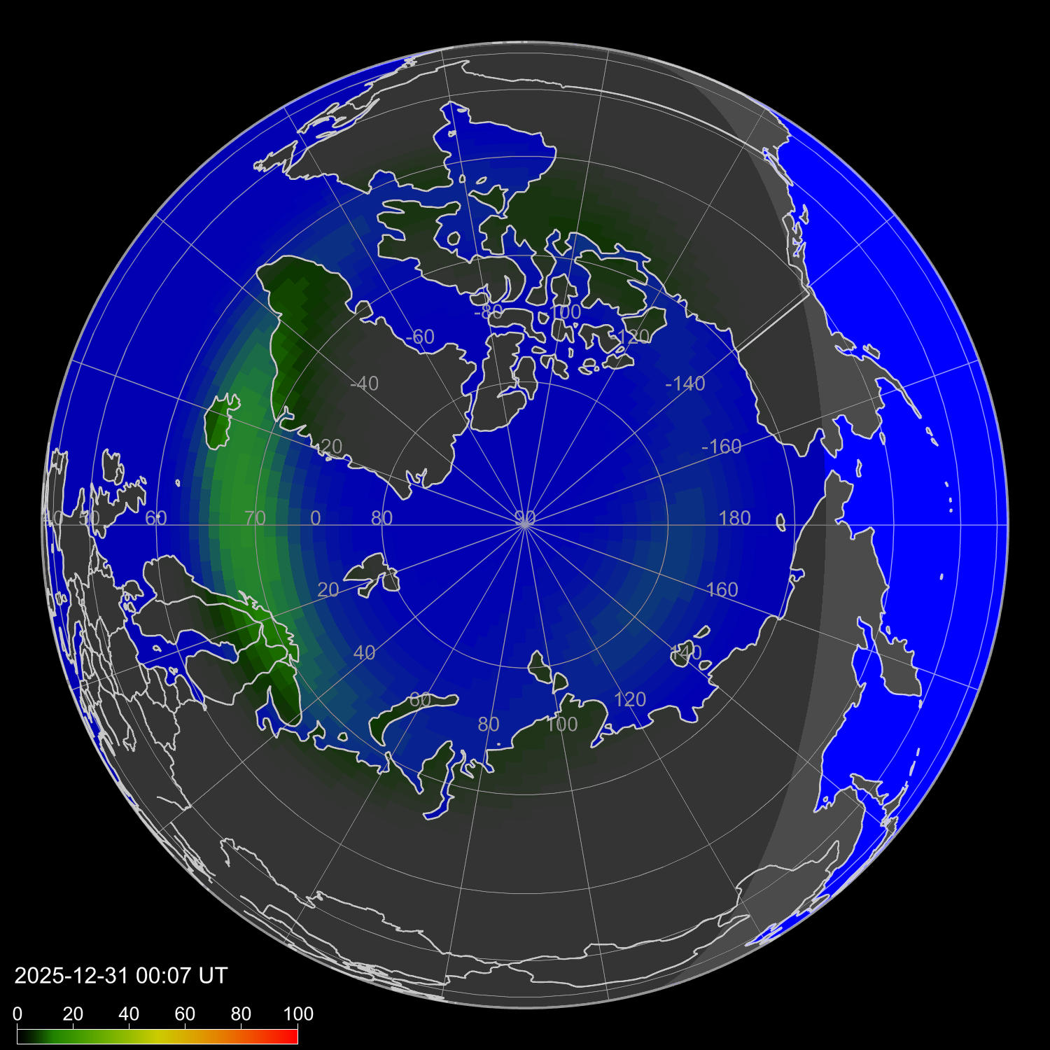 Зона полярных сияний в северном полушарии