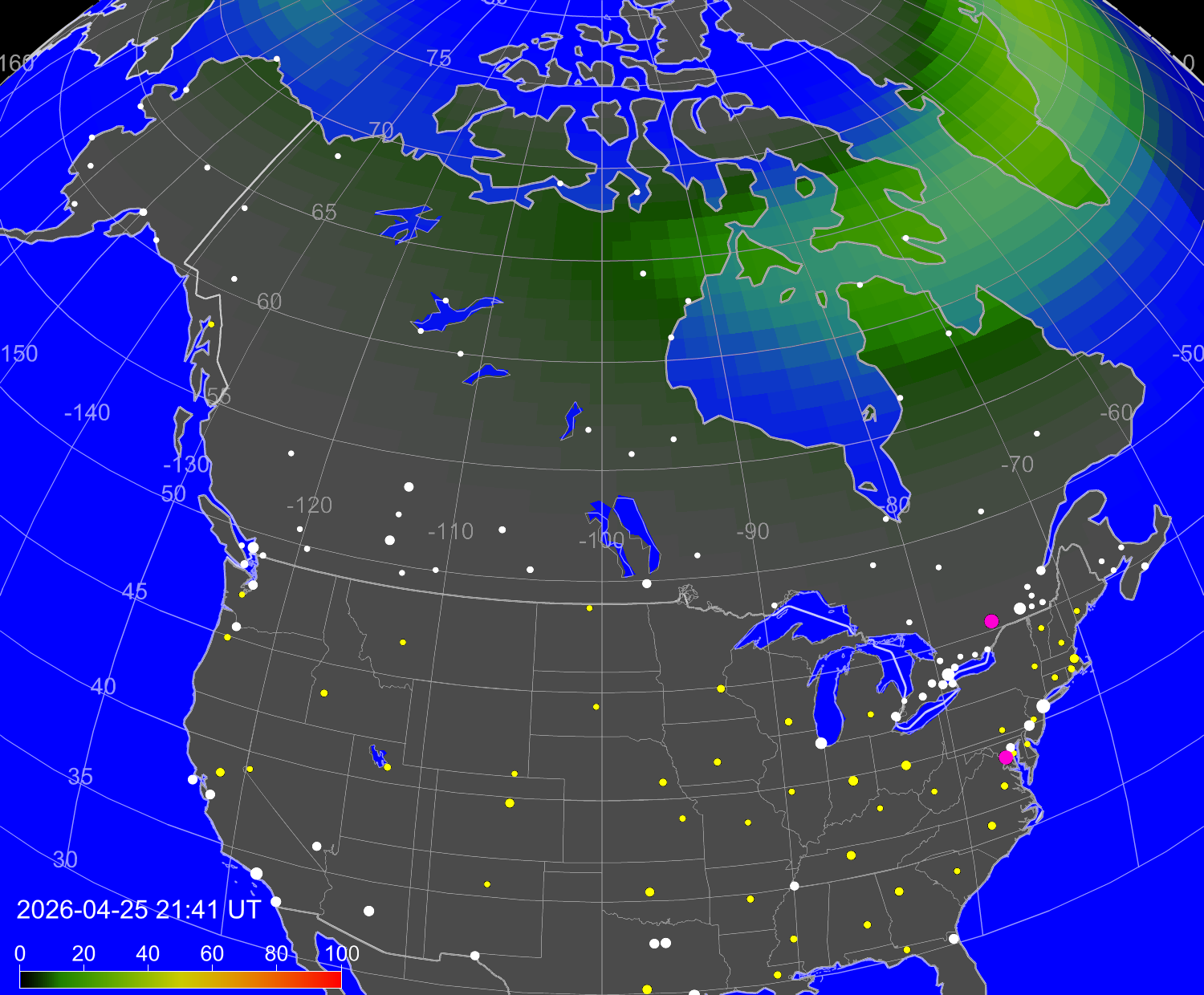 Northern lights (auroras) over North America