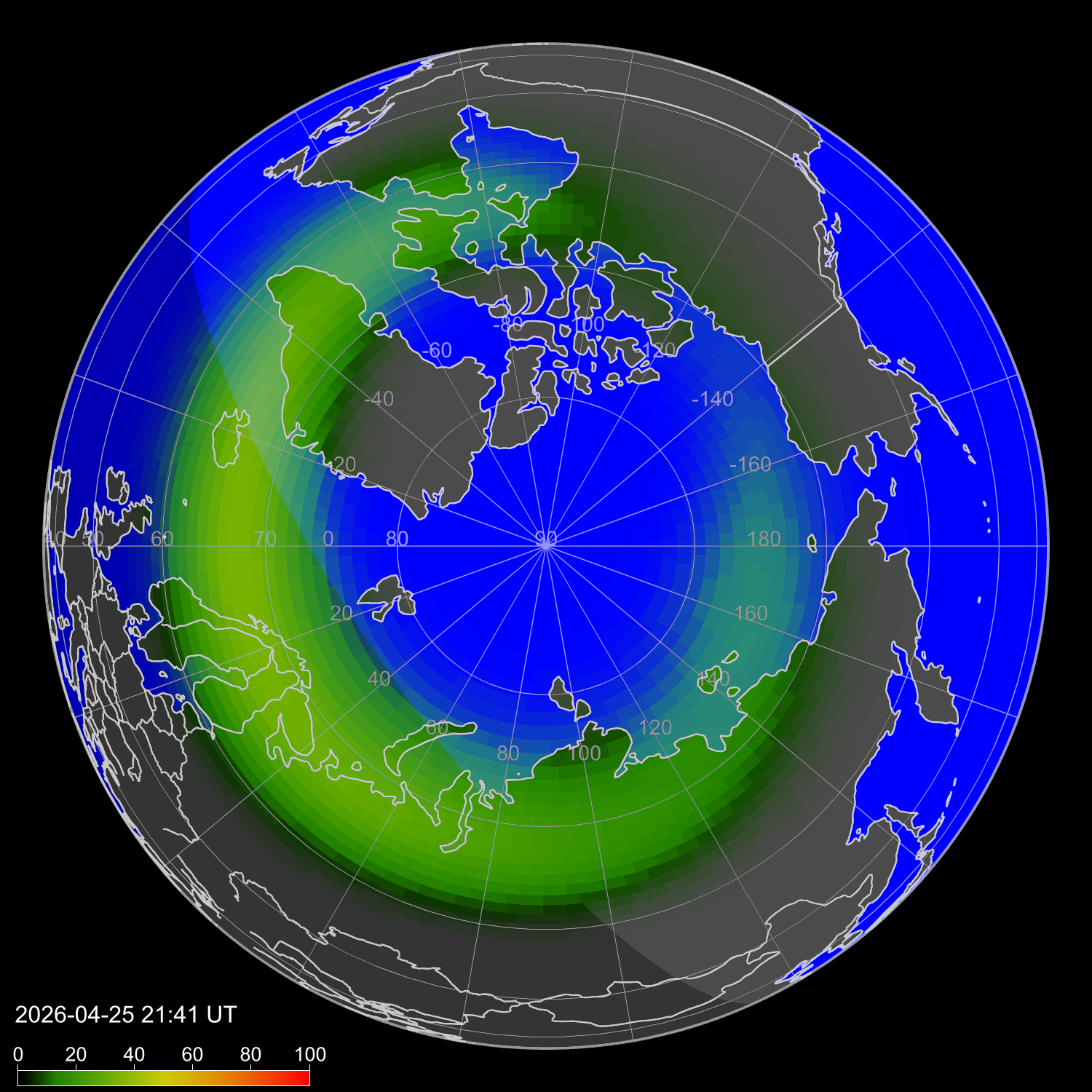 Probability of northern lights in Ottawa