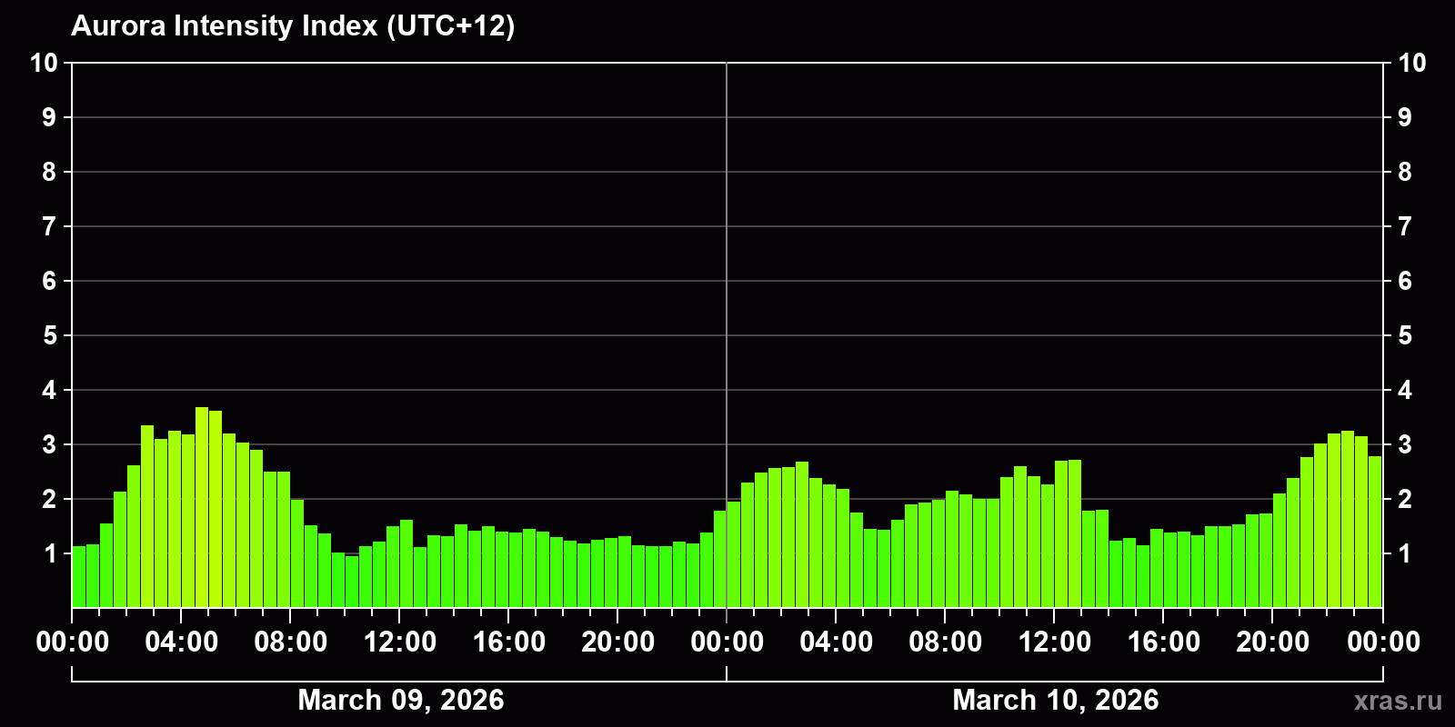 Auroras (northern lights) in Petropavlovsk-Kamchatsky — Mar 10, 2026