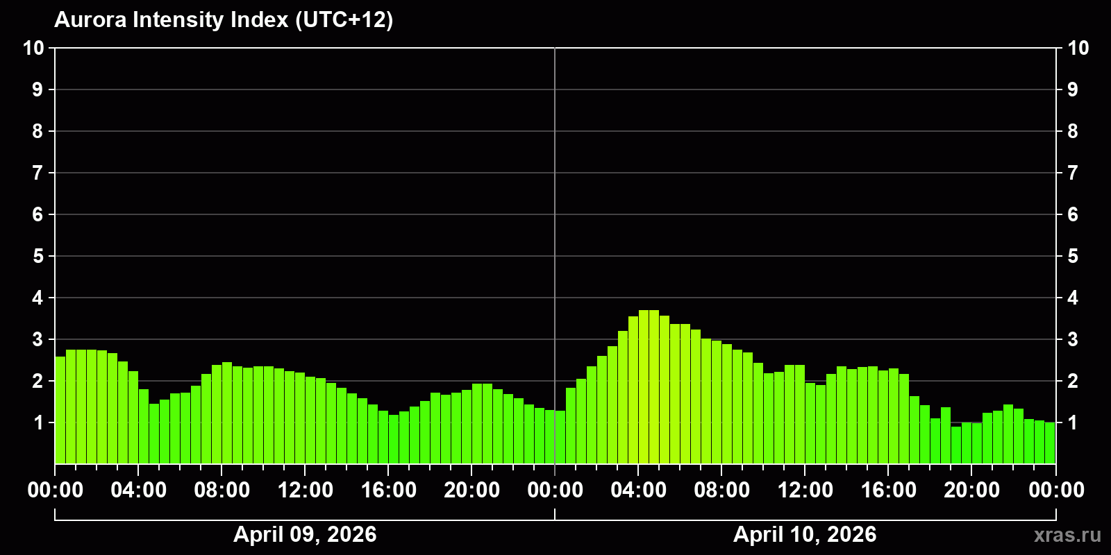 Auroras (northern lights) in Petropavlovsk-Kamchatsky — Apr 10, 2026
