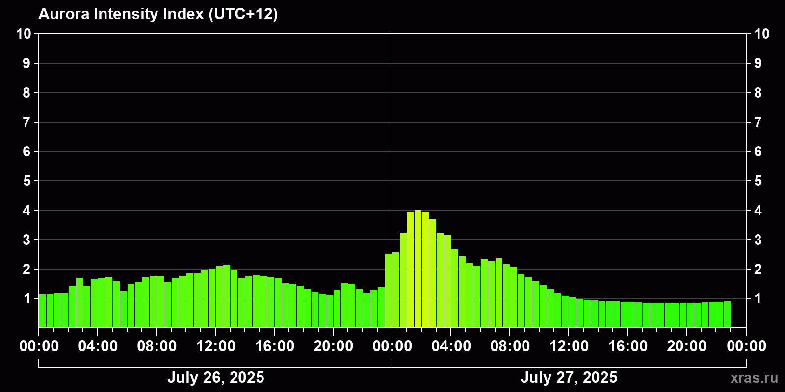 Changes in the auroral intensity index from 2025-07-26 to 2025-07-27 local time