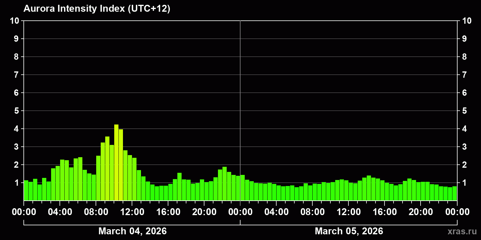 Auroras (northern lights) in Petropavlovsk-Kamchatsky — Mar 05, 2026
