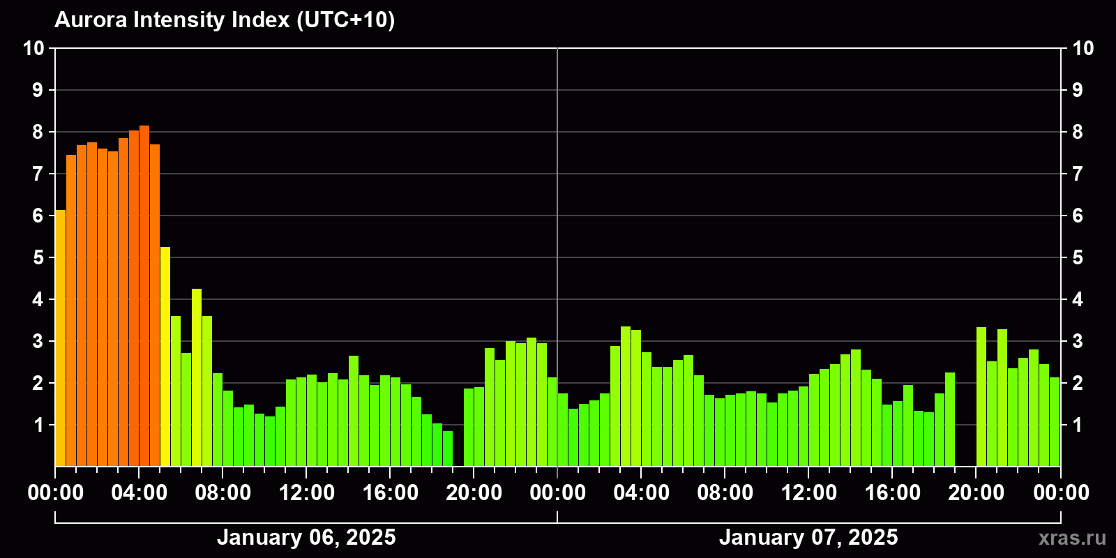 Auroras (northern lights) in Port Moresby — Jan 07, 2025