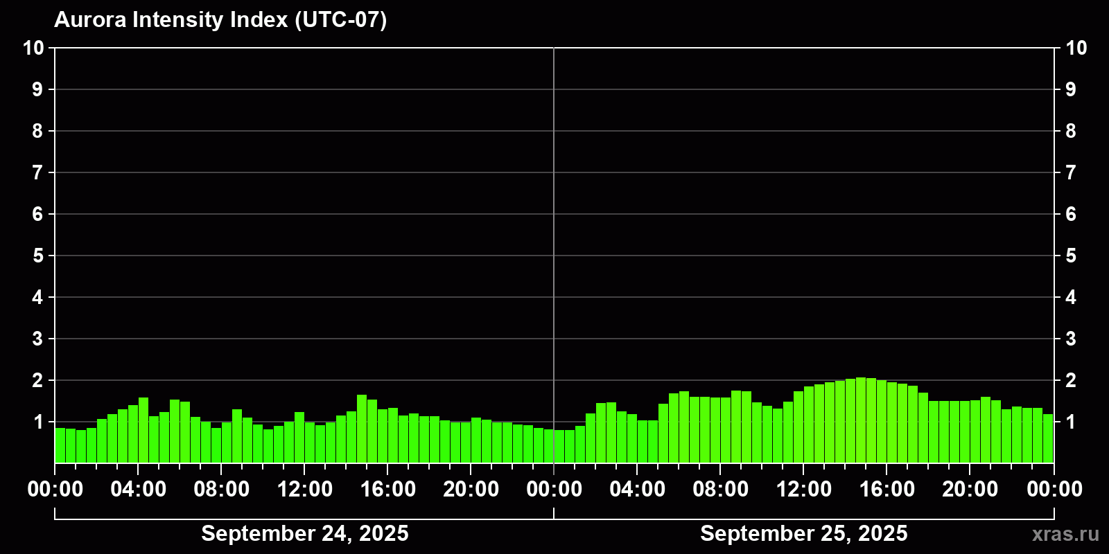 Changes in the auroral intensity index from 2025-09-24 to 2025-09-25 local time