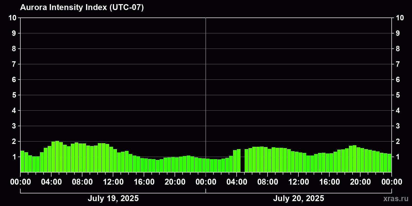 Changes in the auroral intensity index from 2025-07-19 to 2025-07-20 local time