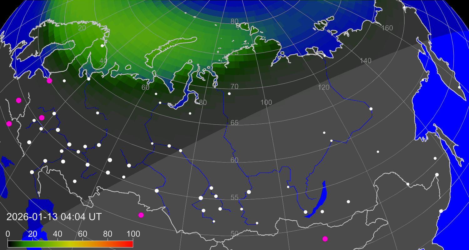 Вероятность полярных сияний в городах Российской Федерации