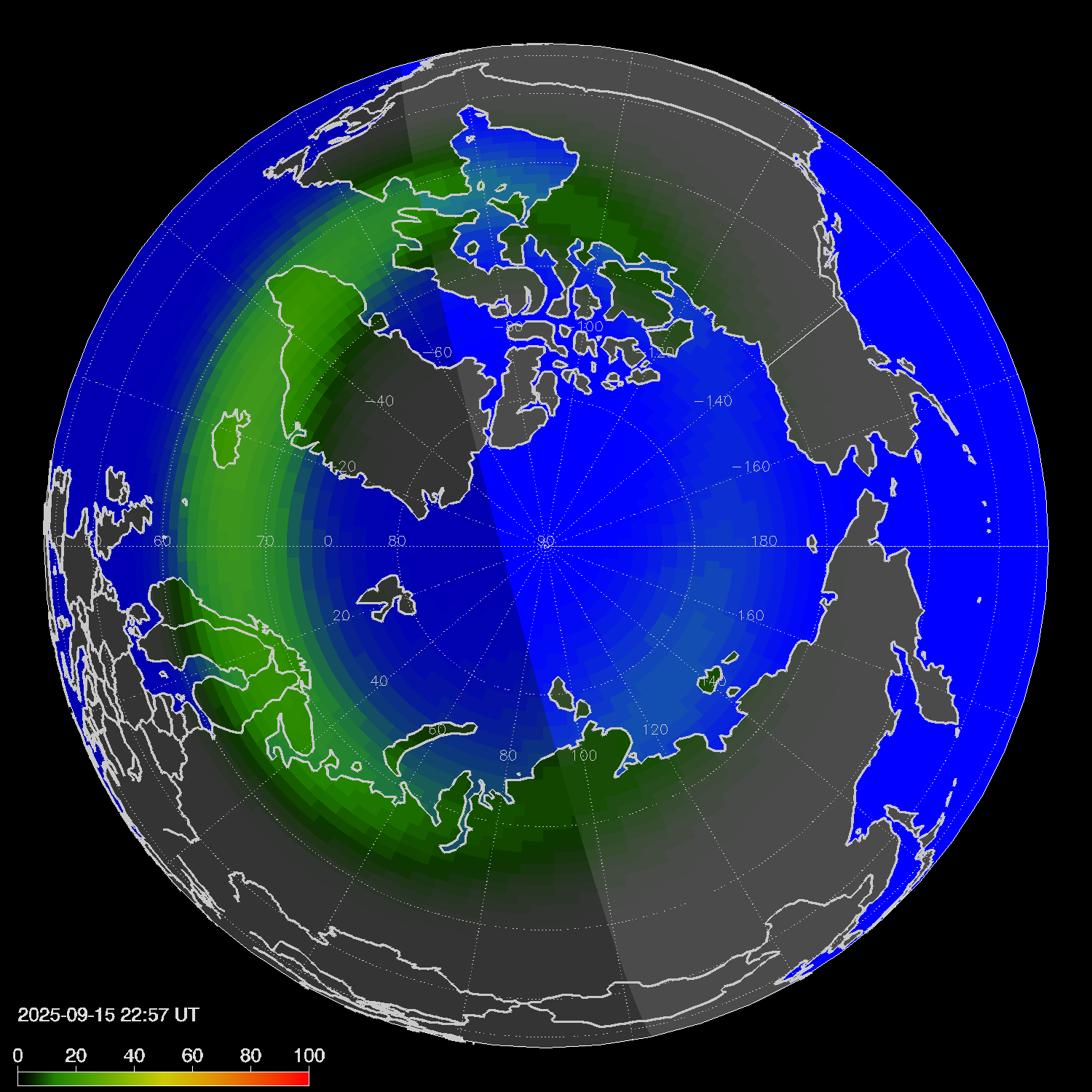 Probability of northern lights in Reykjavik