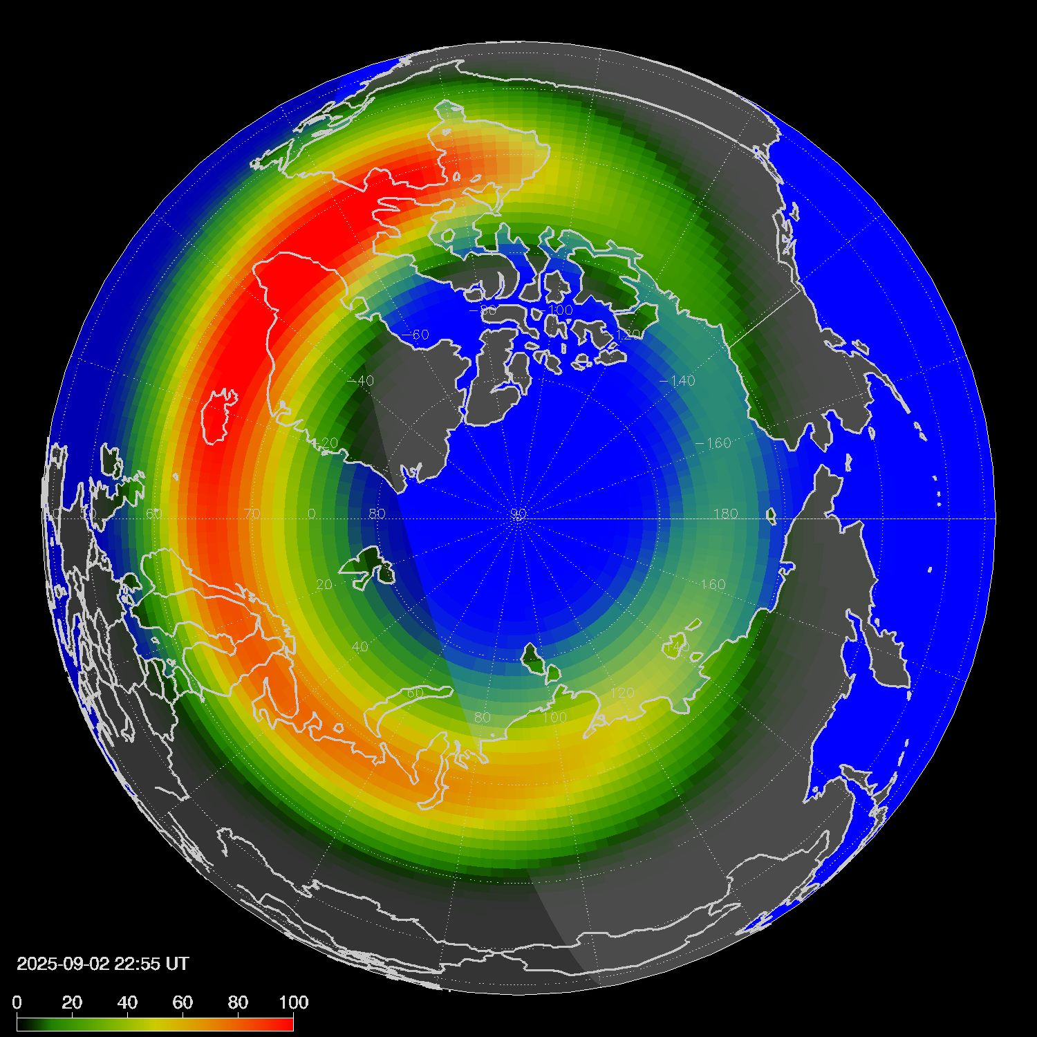 Probability of northern lights in Reykjavik