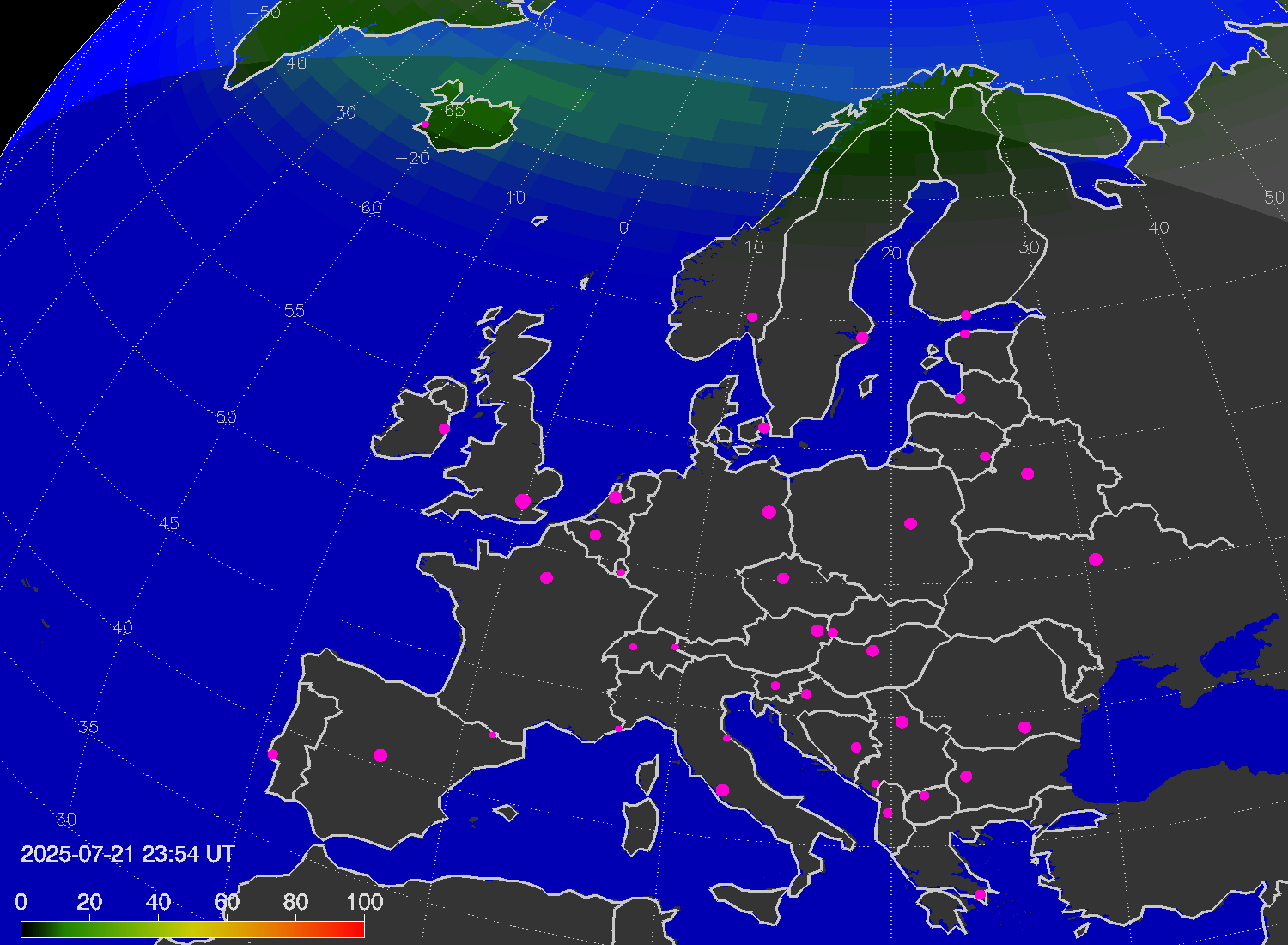 Auroras (northern lights) in Reykjavik — Jul 21, 2025