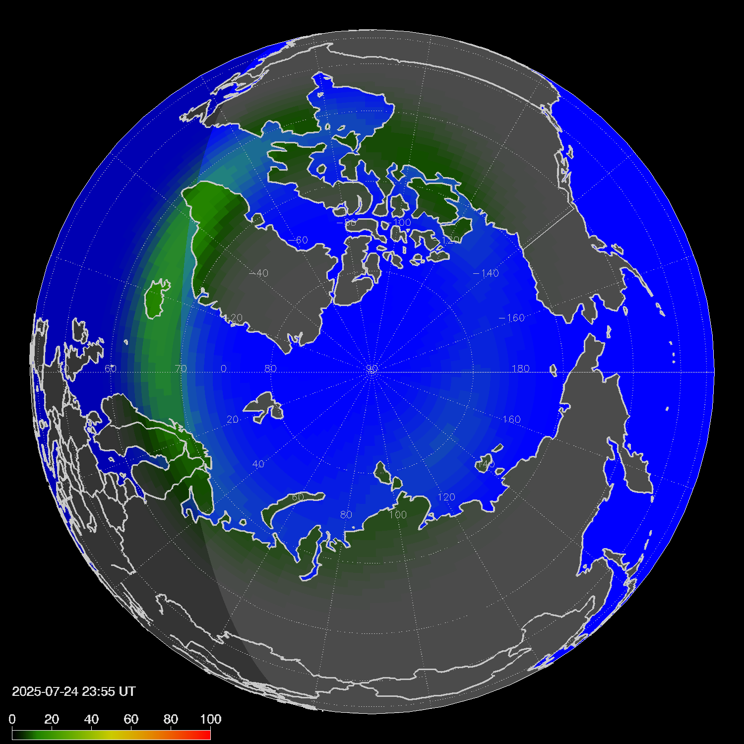 Auroras (northern lights) in Reykjavik — Jul 24, 2025