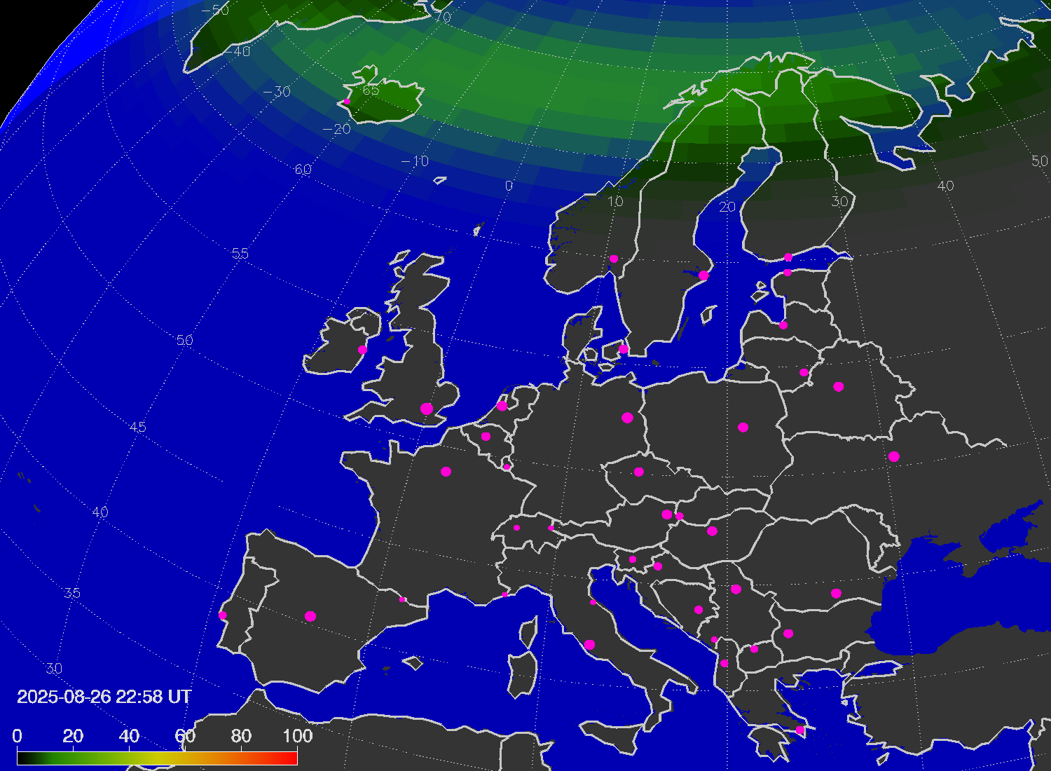 Information as of 2025-08-26 23:57 local time in Reykjavik