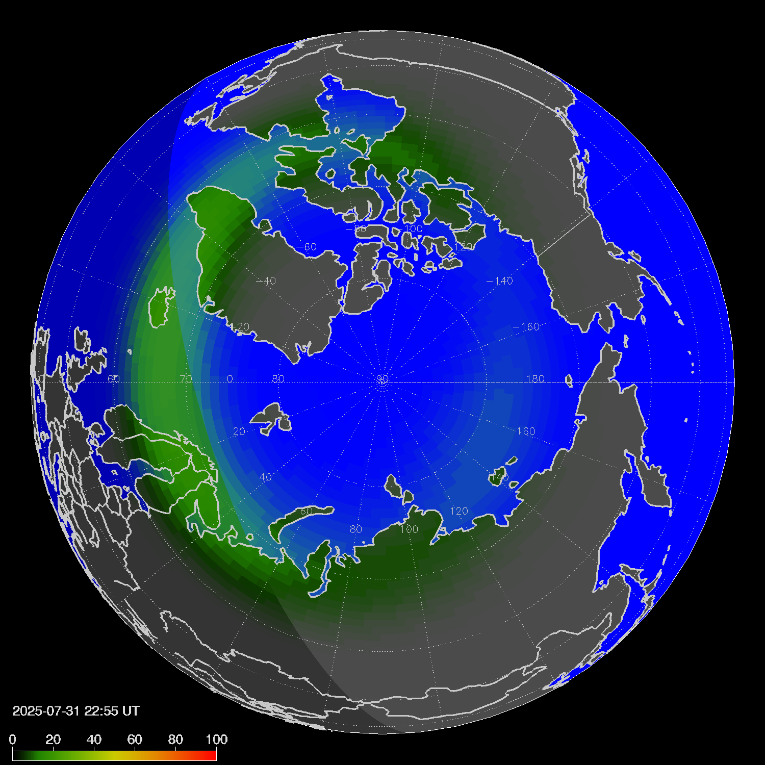 Northern lights (auroras) in the northern hemisphere
