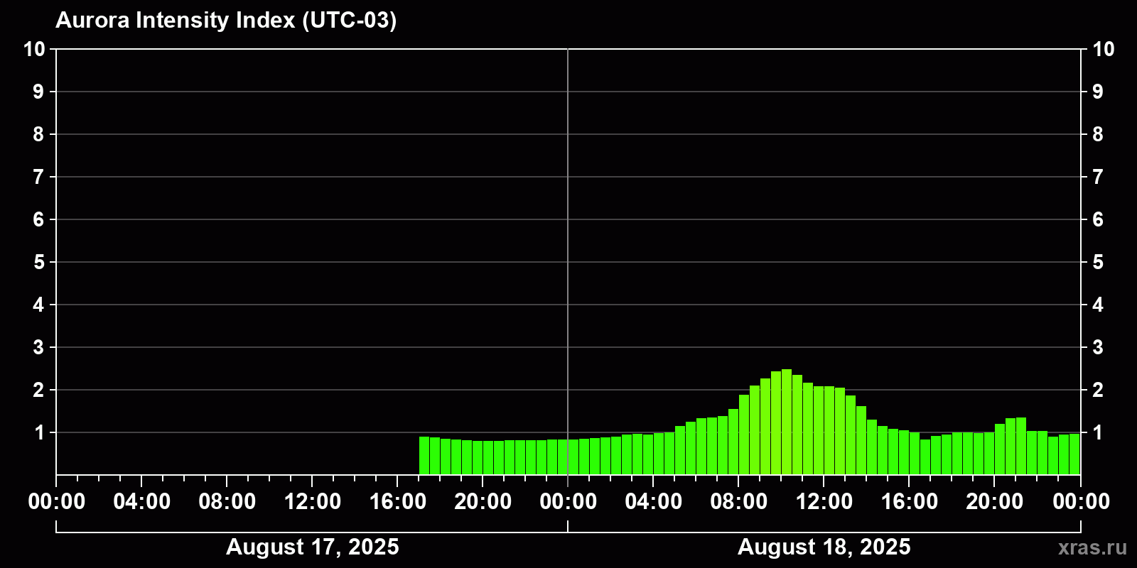 Changes in the auroral intensity index from 2025-08-17 to 2025-08-18 local time