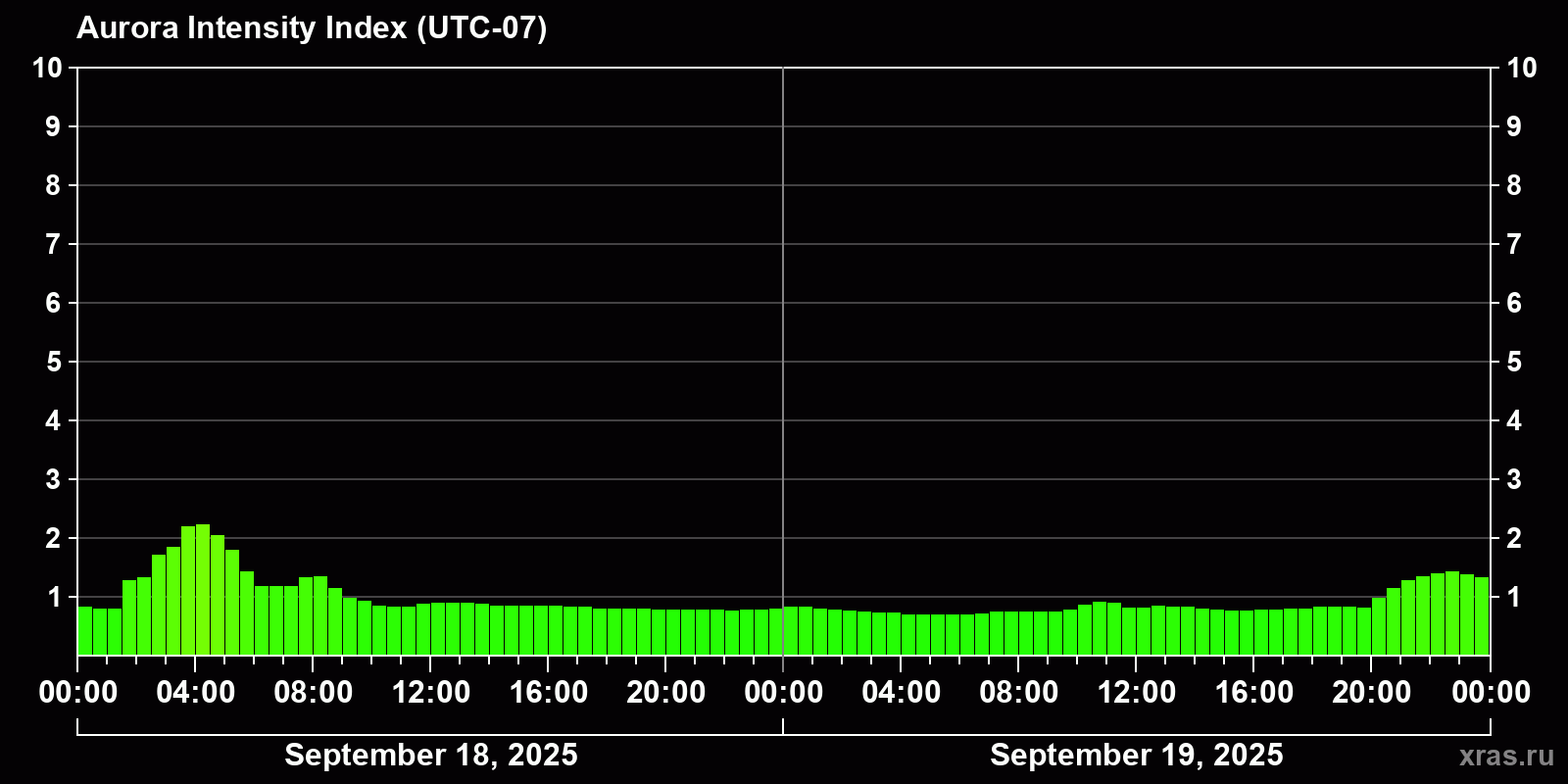 Changes in the auroral intensity index from 2025-09-18 to 2025-09-19 local time