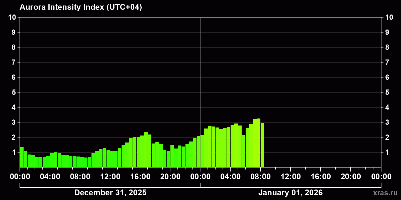 Auroras (northern lights) in Samara — Jan 01, 2026
