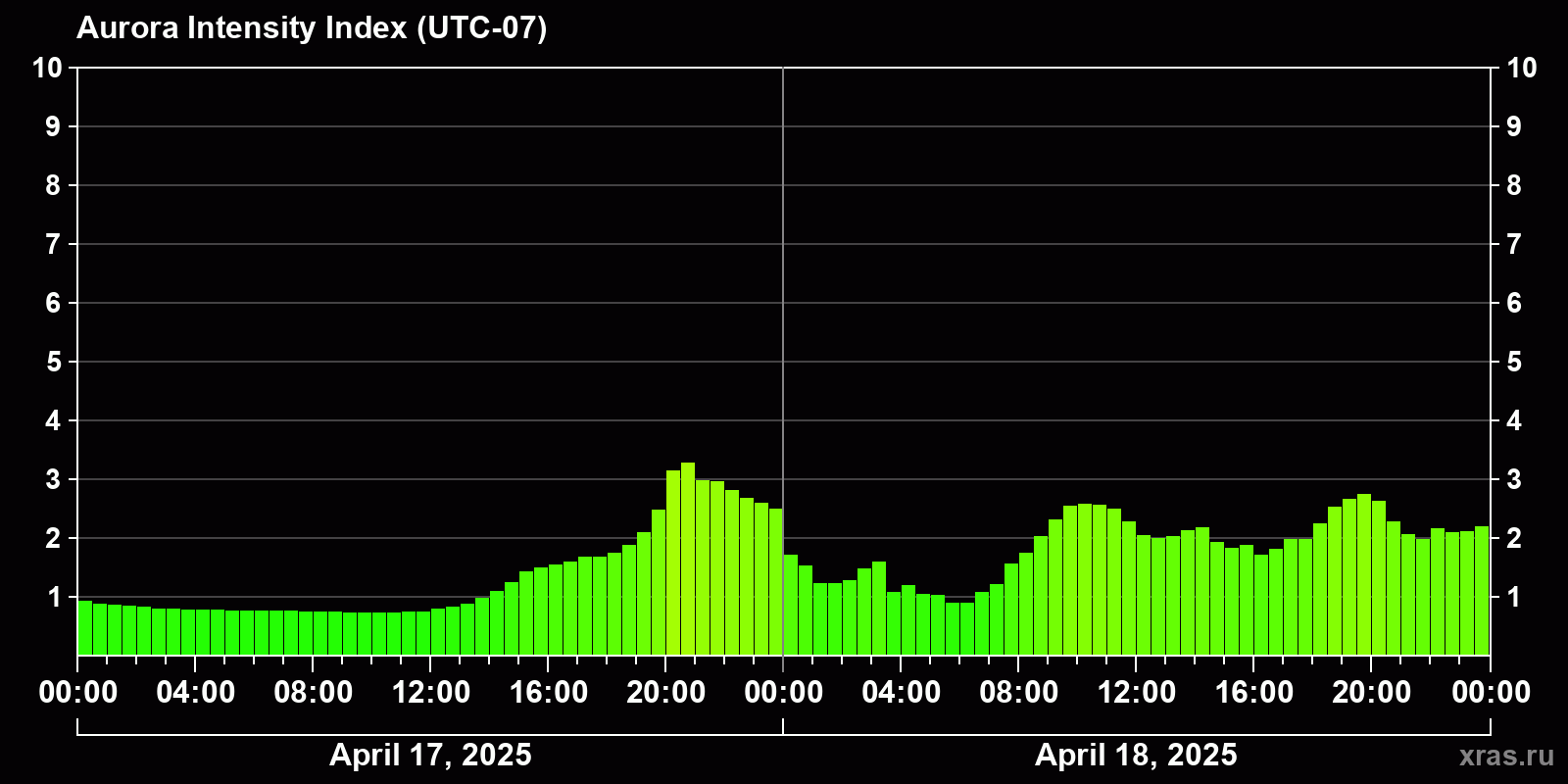 Changes in the auroral intensity index from 2025-04-17 to 2025-04-18 local time