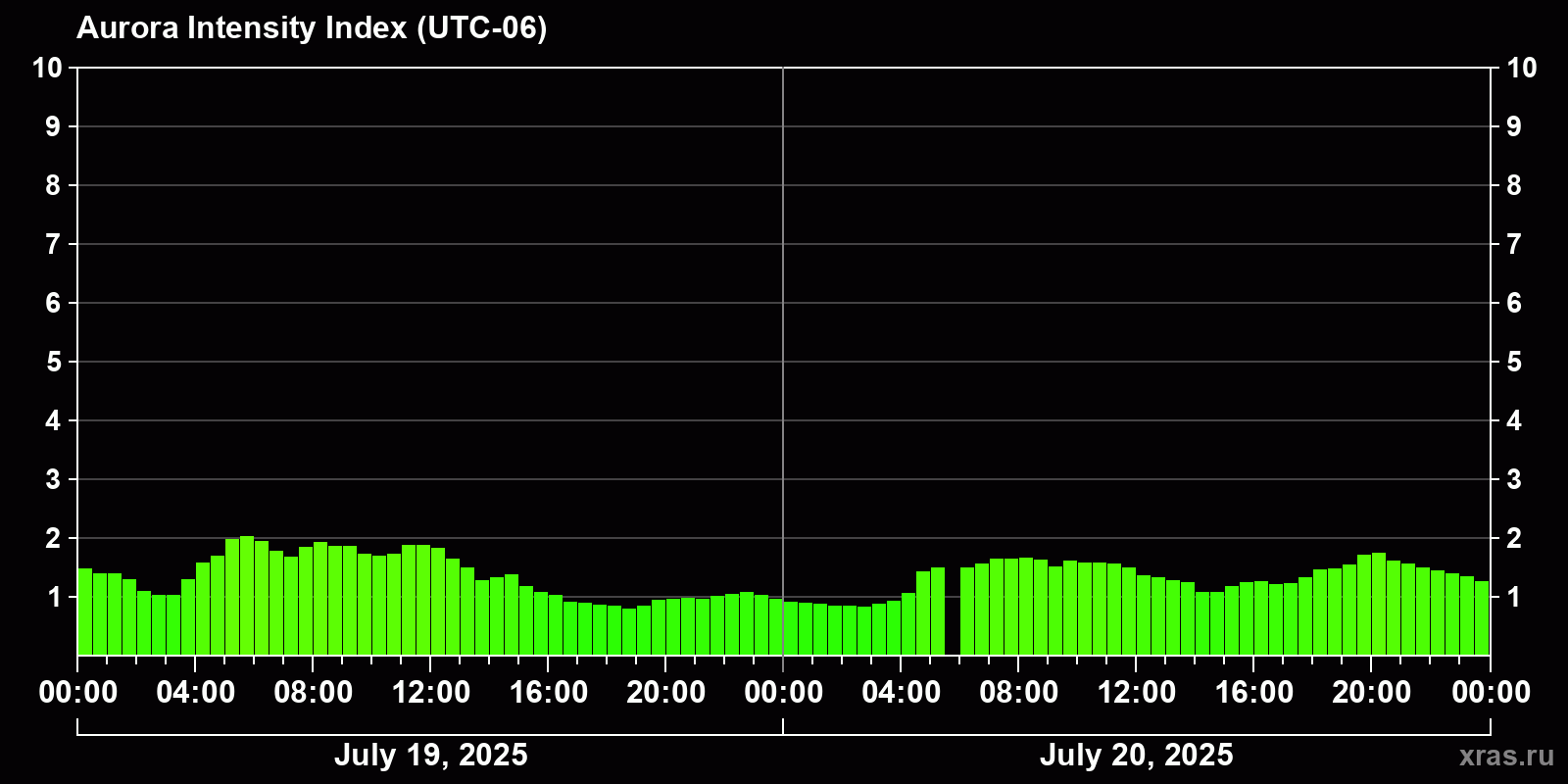 Changes in the auroral intensity index from 2025-07-19 to 2025-07-20 local time
