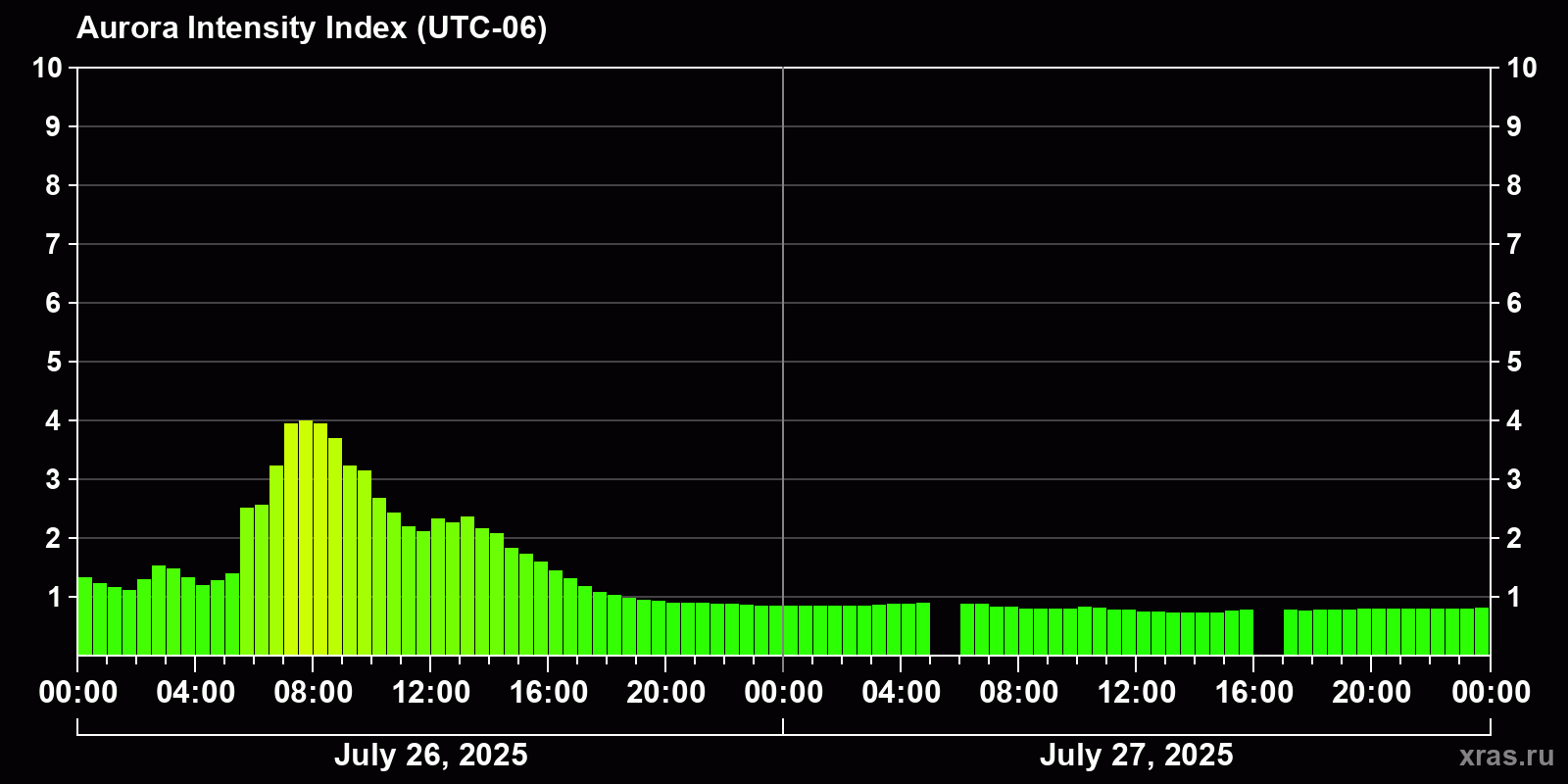 Changes in the auroral intensity index from 2025-07-26 to 2025-07-27 local time