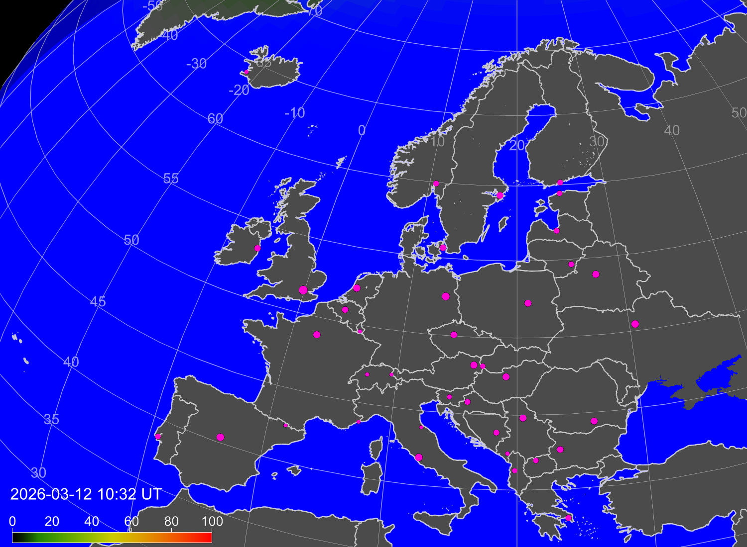 Вероятность полярных сияний в городах Европы