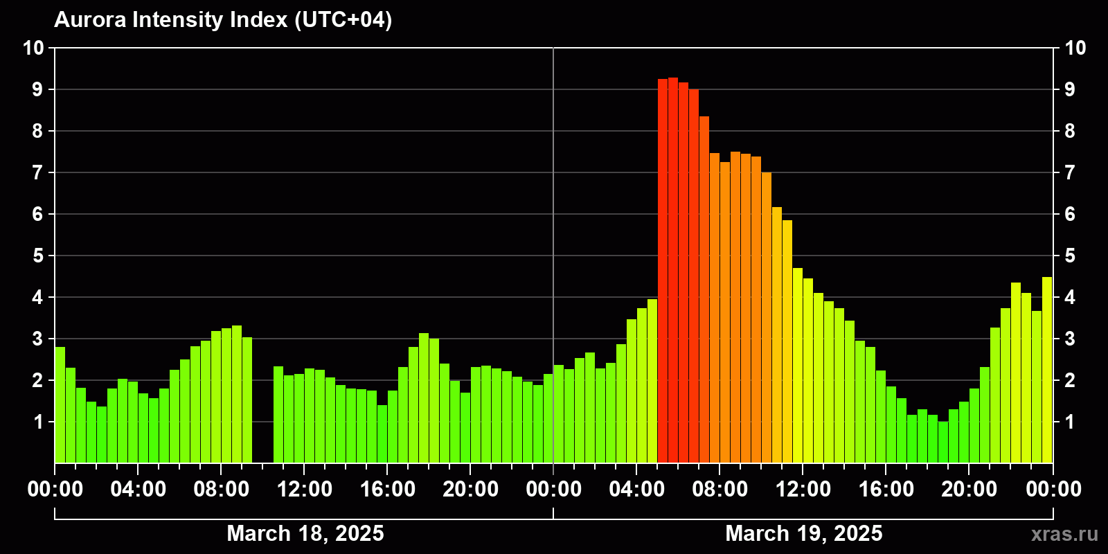 Auroras (northern lights) in Saratov — Mar 19, 2025