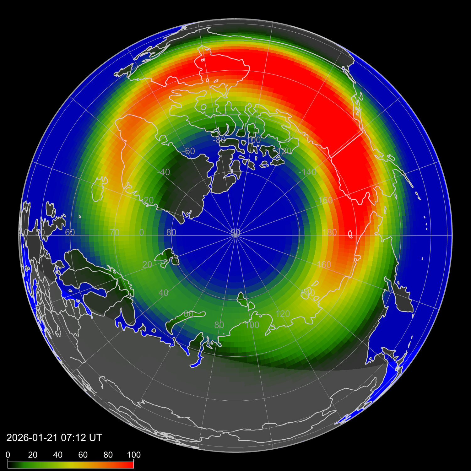 Зона полярных сияний в северном полушарии