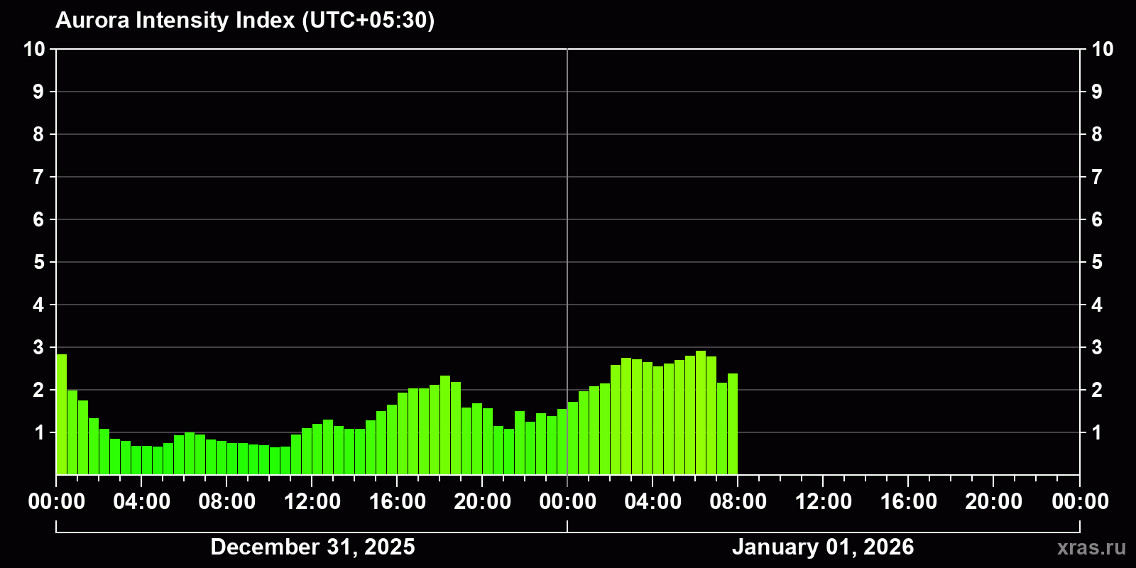 Auroras (northern lights) in Sijua — Jan 01, 2026