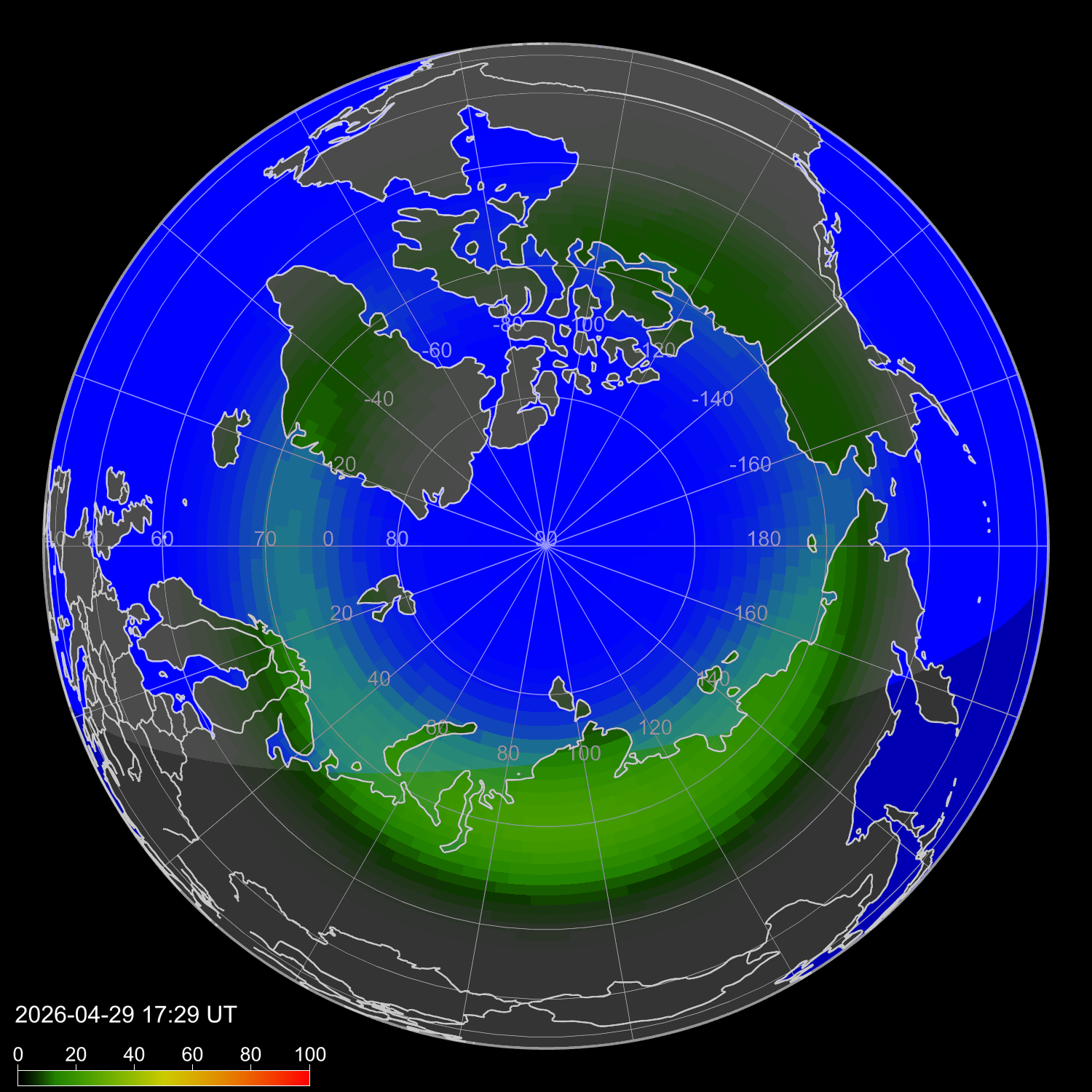 Probability of northern lights in Sochi