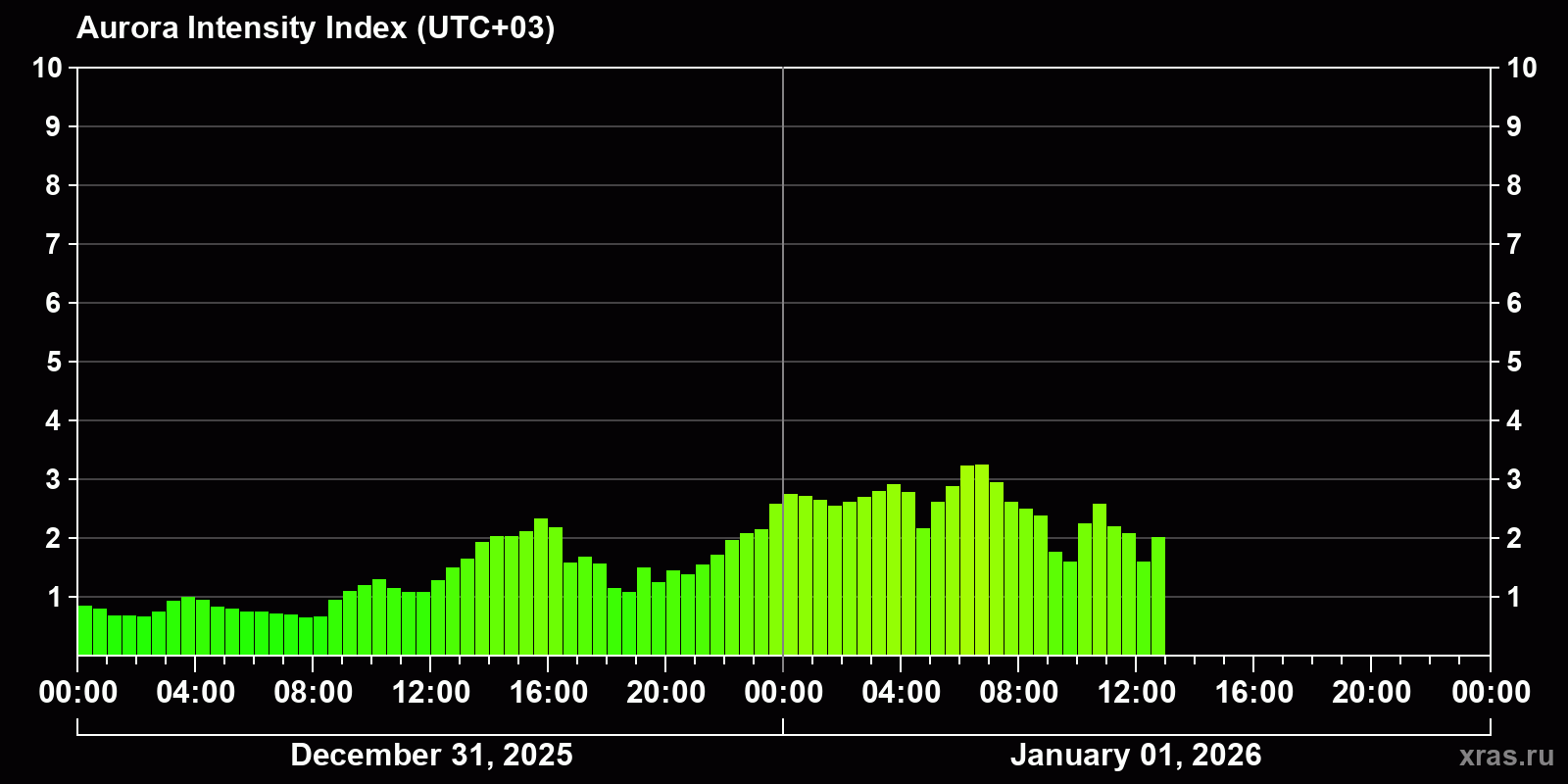 Auroras (northern lights) in Stavropol — Jan 01, 2026